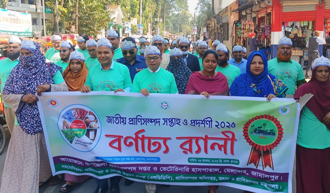 “দেশীয় জাত উন্নত প্রযুক্তি, প্রাণিসম্পদে হবে উন্নতি” এই প্রতিপাদ্যে জামালপুরের মেলান্দহে জাতীয় প্রাণিসম্পদ সপ্তাহ ও প্রদর্শনী-২০২৫ শুরু হয়েছে।