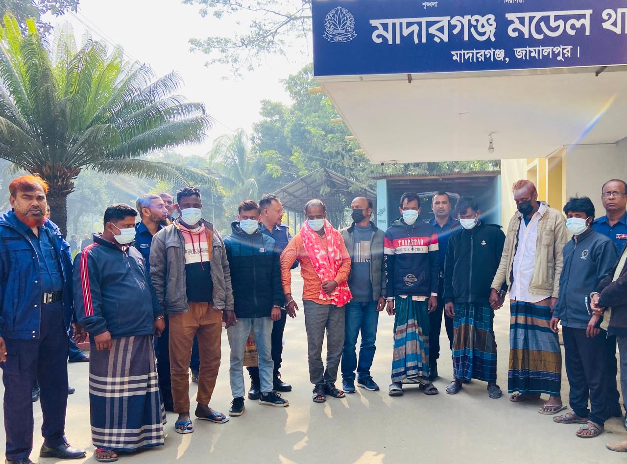 আটককৃতদের জামালপুর বিজ্ঞ আদালতে পাঠানো হয়েছে এবং পলাতকদের গ্রেফতারের চেষ্টা চলছে। এ অভিযান অব্যাহত থাকবে বলে জানান পুলিশের এই কর্মকর্তা।