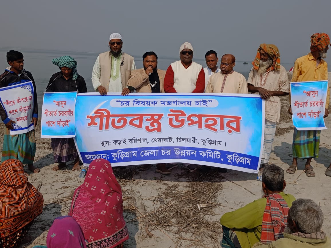 শুক্রবার দুপুরে কুড়িগ্রামের চিলমারী উপজেলার ব্রহ্মপুত্র নদ দ্বারা বিচ্ছিন্ন চিলমারী ইউনিয়নের কড়াই বরিশাল চরে প্রায় দুই শতাধিক অসহায়, দুস্থ ও শীতার্ত মানুষের মাঝে কম্বল বিতরণ করা হয়। জেলা চর উন্নয়ন কমিটির উদ্যোগে আয়োজিত এ কর্মসূচি শুধু শীত নিবারণের সহায়তা নয়, বরং চরবাসীর প্রতি সমাজ ও রাষ্ট্রের দায়বদ্ধতার কথাও নতুন করে স্মরণ করিয়ে দেয়।
