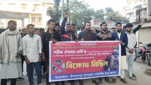 জামালপুরের ইসলামপুরে ইনকিলাব মঞ্চের নেতা ও ঢাকা-৮ আসনের স্বতন্ত্র প্রার্থী শরীফ ওসমান হাদীকে গুলি করে হত্যা চেষ্টার প্রতিবাদে বিক্ষোভ মিছিল ও সড়ক অবরোধ কর্মসূচি পালন করেছে এলাকাবাসী ও নেতাকর্মীরা। ১৩ডিসেম্বর…