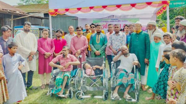 একই সাথে বাংলা বাজার, তেঘরিয়া ও ঝাড়কাটা এলাকার ৩ জন অস্বচ্ছল প্রতিবন্ধীর মাঝে হুইল চেয়ার বিতরণ করা হয়। হুইলচেয়ার বিতরণ এবং ফ্রি মেডিকেল ক্যাম্প উদ্বোধন করেন উপজেলা নির্বাহী অফিসার নাদির শাহ।