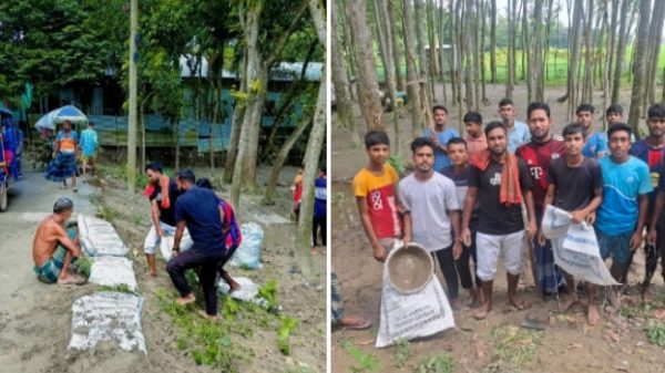 শনিবার সকাল থেকে বিকাল পর্যন্ত ছাত্র-যুবকেরা রাস্তা মেরামতে কেউ কেউ বস্তায় মাটি ভরছে,আবার কেউ কেউ বস্তা টেনে জায়গা মত রাখছে, এদের মধ্যে আবার ২/৩ জন কে পাইপ বসাতেও দেখা গেছে রাস্তায় যাতে জলাবদ্ধতা তৈরি না হয়। বেশ মনোযোগী ও হাস্যোজ্জল মুখেই নিজেরা শ্রম দিয়ে স্বেচ্ছাসেবকের কাজ করছিলেন রাস্তা মেরামতে।