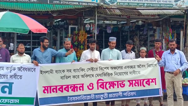 সমাবেশে বক্তারা বলেন, ২০১৭ থেকে ২০২৪ সাল পর্যন্ত এস আলম গ্রুপ কর্তৃক ইসলামী ব্যাংকসহ বিভিন্ন ব্যাংকে অবৈধভাবে নিয়োগ দেওয়া হয়েছে। এসব নিয়োগ অবিলম্বে বাতিল করে দেশের সকল অঞ্চলে মেধা ও যোগ্যতার ভিত্তিতে নতুন করে নিয়োগ দিতে হবে। তারা আরও দাবি জানান—