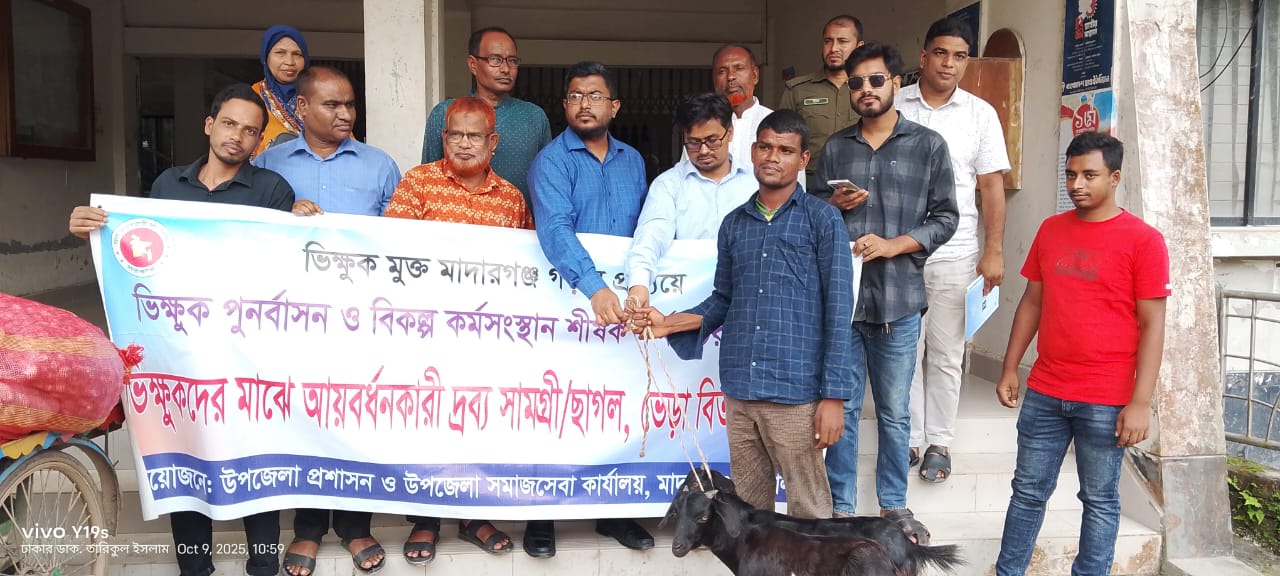 ভিক্ষুক মুক্ত মাদারগঞ্জ গড়ার প্রত্যয়ে ভিক্ষুক পুনর্বাসন ও বিকল্প কর্মসংস্থান শীর্ষক কর্মসূচীর আওতায় ভিক্ষুকদের মাঝে ছাগল ও প্রাকৃতিক দূর্যোগে ক্ষতিগ্রস্তদের মাঝে চেক বিতরণ করা হয়েছে।