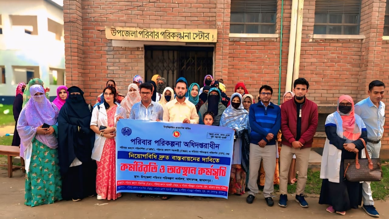 জামালপুরের মাদারগঞ্জে পরিবার পরিকল্পনা অধিদপ্তরাধীন নিয়োগবিধি দ্রুত বাস্তবায়নের দাবিতে কর্মচারীদের কর্মবিরতি ও অবস্থান কর্মসূচি অনুষ্ঠিত হয়েছে।