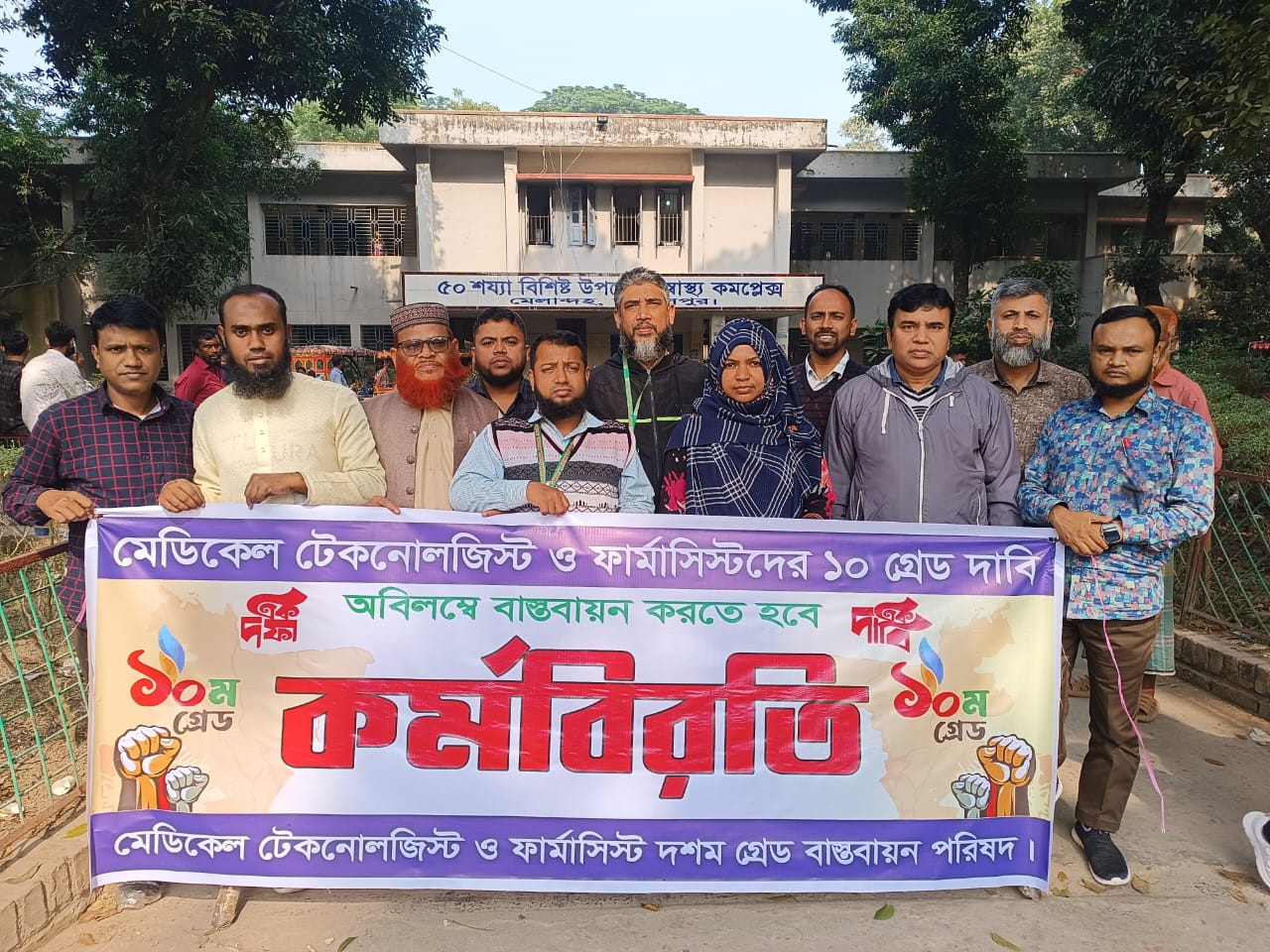 কেন্দ্রীয় কর্মসূচির অংশ হিসেবে মেডিকেল টেকনোলজিস্ট ও ফার্মাসিস্টদের ১০ম গ্রেড বাস্তবায়নের দাবিতে জামালপুরের মেলান্দহে কর্মবিরতি ও অবস্থান কর্মসূচি পালন করা হয়েছে।