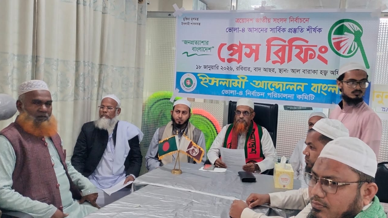 ভোলা-৪ আসনে নির্বাচনী পরিবেশ ও প্রস্তুতি নিয়ে ইসলামী আন্দোলন প্রার্থীর প্রেস ব্রিফিং