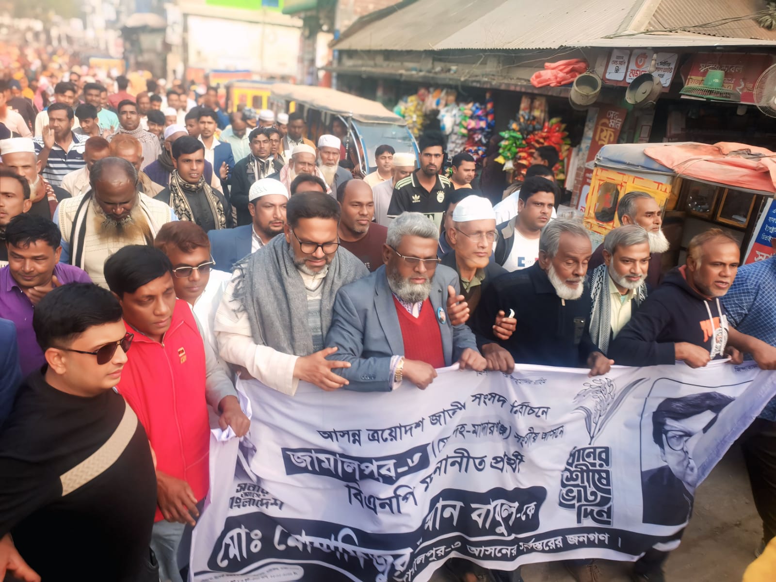 মাদারগঞ্জের কয়ড়া বাজারে মোস্তাফিজুর রহমান বাবুলের পক্ষে ধানের শীষ প্রতীকের গণ মিছিল