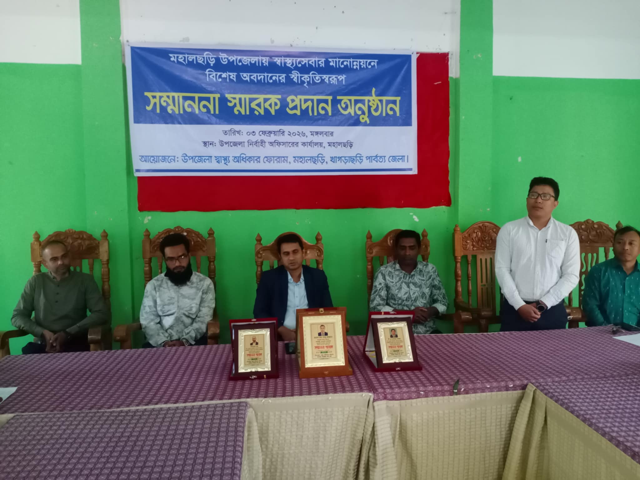মঙ্গলবার (০৩ ফেব্রুয়ারি ২০২৬) মহালছড়ি উপজেলা পরিষদ মিলনায়তনে উপজেলা স্বাস্থ্য অধিকার ফোরামের আয়োজনে এ সম্মাননা স্মারক প্রদান অনুষ্ঠান অনুষ্ঠিত হয়।