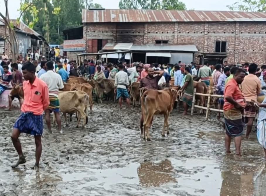 কুড়িগ্রামে যাত্রাপুর গরুর হাটে কাঁদা পানিতে কোটি টাকার বেচাকেনা, চর্মরোগে আক্রান্ত ব্যবসায়ীরা