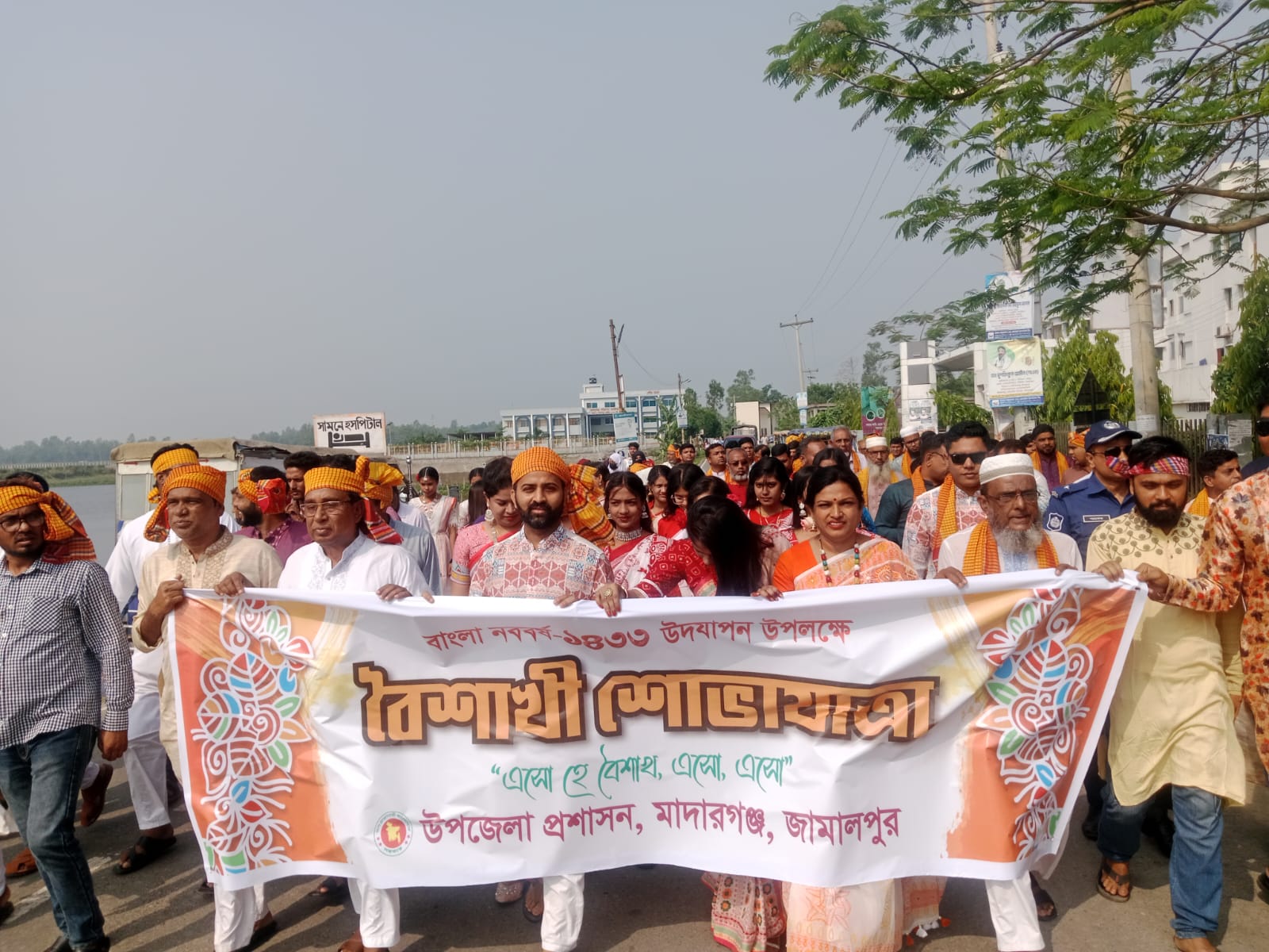 এসো হে বৈশাখ এসো এসো এ স্লোগানে বাংলা নববর্ষ-১৪৩৩ উদযাপন উপলক্ষে জামালপুরের মাদারগঞ্জে বর্ণাঢ্য র্যালী, আলোচনা সভা ও সাংস্কৃতিক অনুষ্ঠান অনুষ্ঠিত হয়েছে।