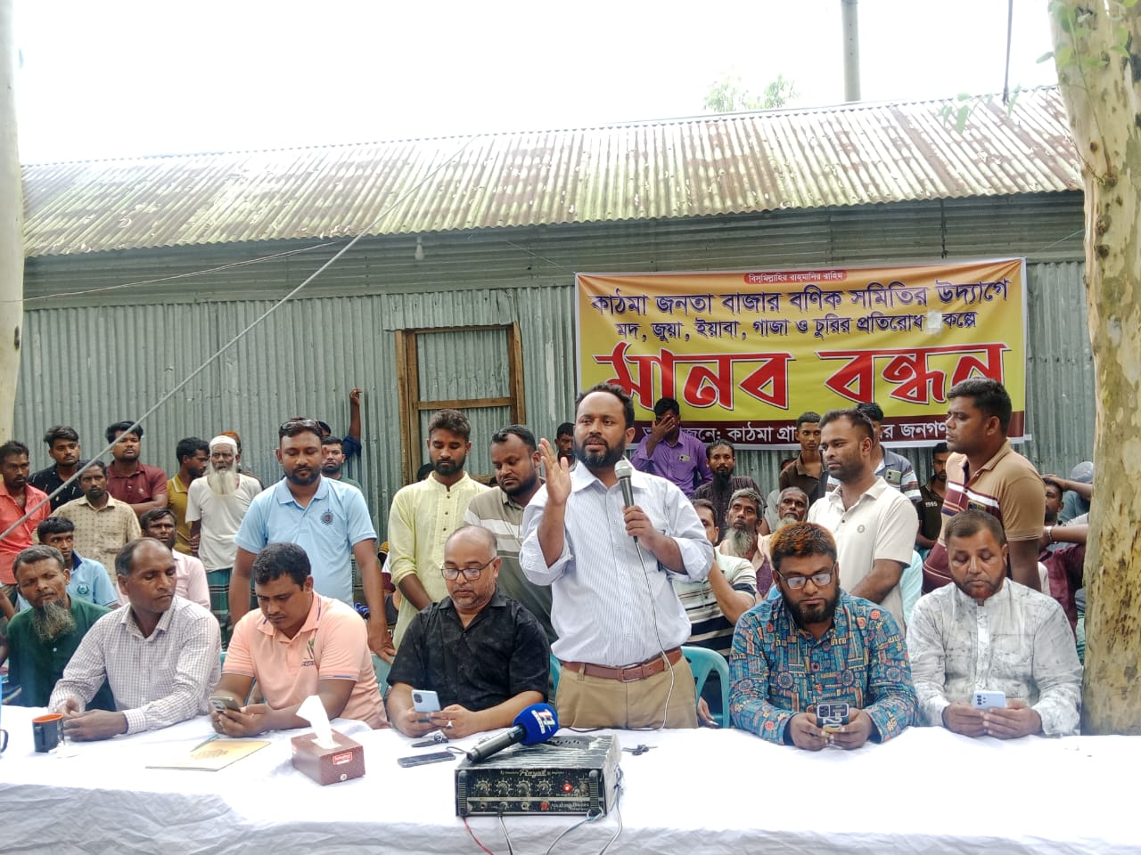 কাঠমা জনতা বাজার বণিক সমিতি উদ্যোগে মাদক ও চুরি প্রতিরোধে মানববন্ধন এর খন্ডচিত্র। ছবিঃ চ্যানেল ১১ নিউজ জামালপুরের মাদারগঞ্জ- মেলান্দহের সীমান্তবর্তী ইসলামপুরের কাঠমা জনতা বাজার বণিক সমিতির উদ্যোগে মাদক,জুয়া, ইয়াবা,…